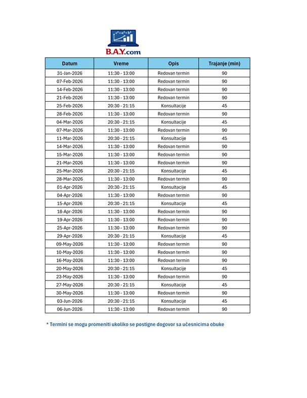 Pristup svim snimljenim časovima i nastavnim materijalima (Word, PDF) sa predavanja i konsultacija
